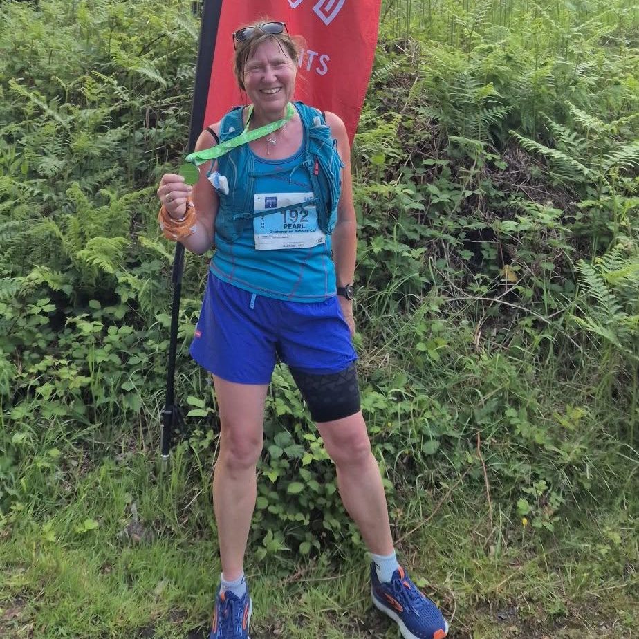On Saturday, Gill Spinney ran the Rab Scafell Sky race, described as a thrilling journey across some of the highest ground in the Lake District. It is a 40km race consisting of a 2800m ascent in a horse-shoe loop. The weather was awful, with heavy rain, fog and 50mph winds on the mountain tops, making it incredibly slippery on the rocky downhill sections and also hard to find the route markers.