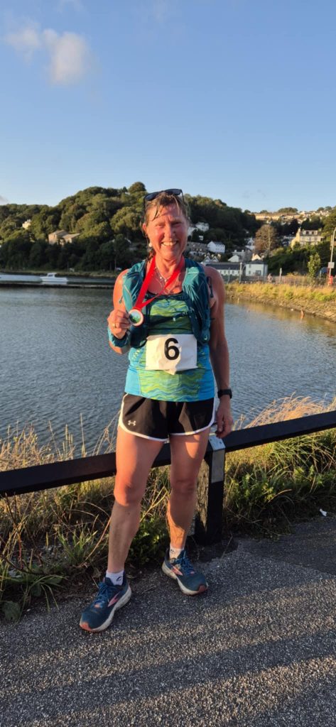 The race itself is nearly all off road, following alongside the beautiful River Dart, starting and finishing on Borough Park. The hilly, hot route totalled 525ft ascent and Pearl was rewarded with friendly faces and beautiful scenery. She finished in a time of 01:13:00.