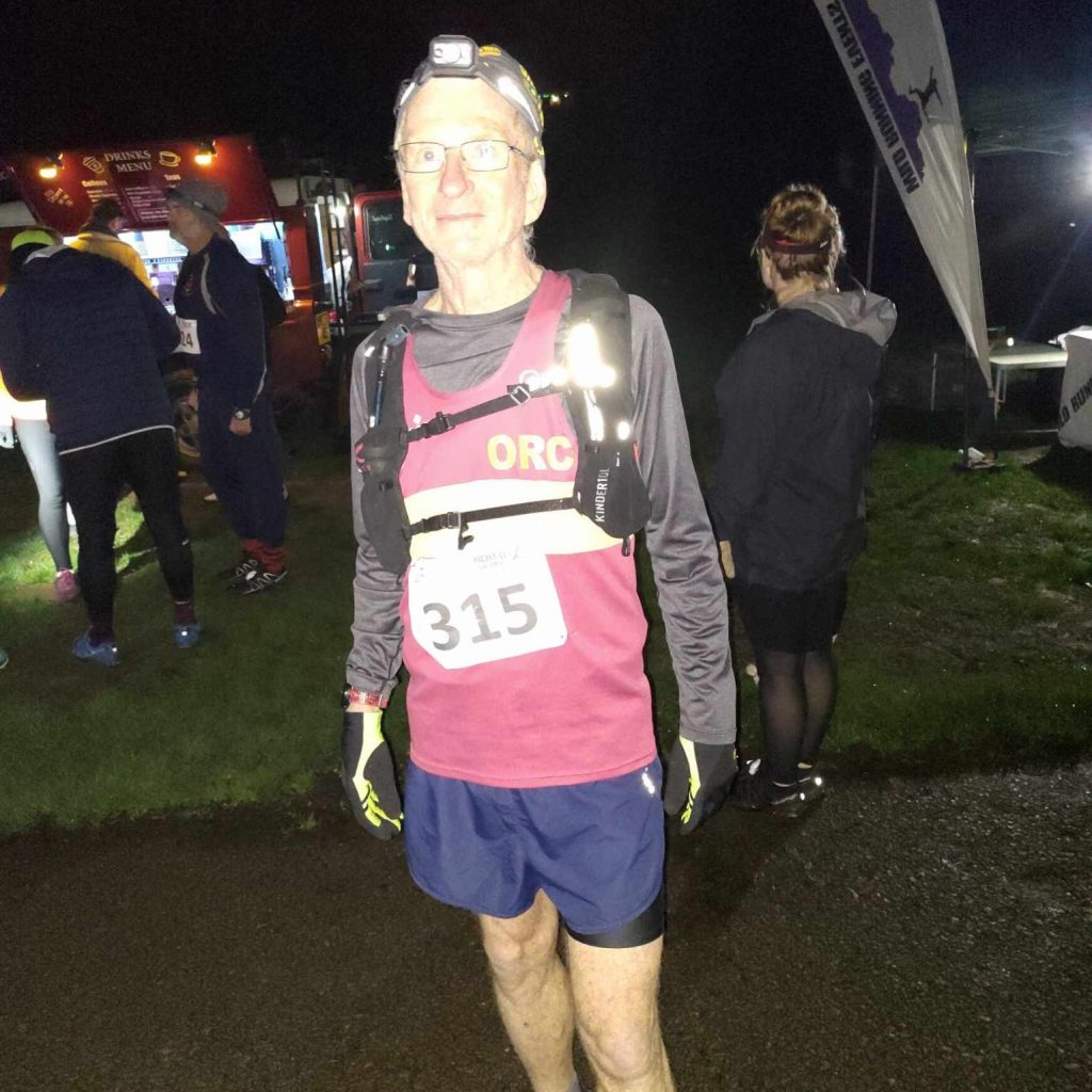 It’s a scenic but challenging course, especially in the dark. The runners were fortunate that it was lovely running weather and a nice trail. Although well marked Ian did get lost (only once!) and came home 1st V60 and joint 4th place overall in a time of 1:57.