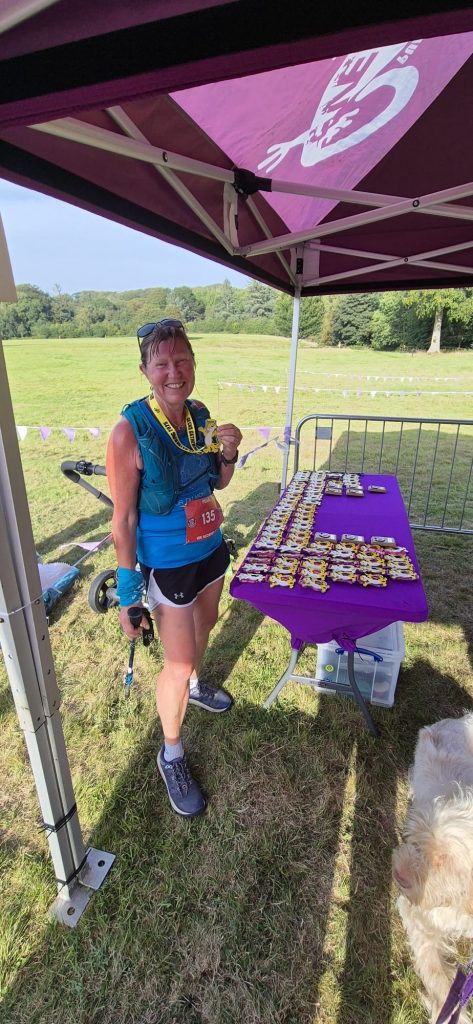 This is part of a multi distance event day by Purple Gecko Events. Despite feeling tired after yesterday’s race, she had another great run enjoying lots more hills! Pearl commented the course was actually almost 11k and she was pleased to finish in 1:10 and again first in her age category.