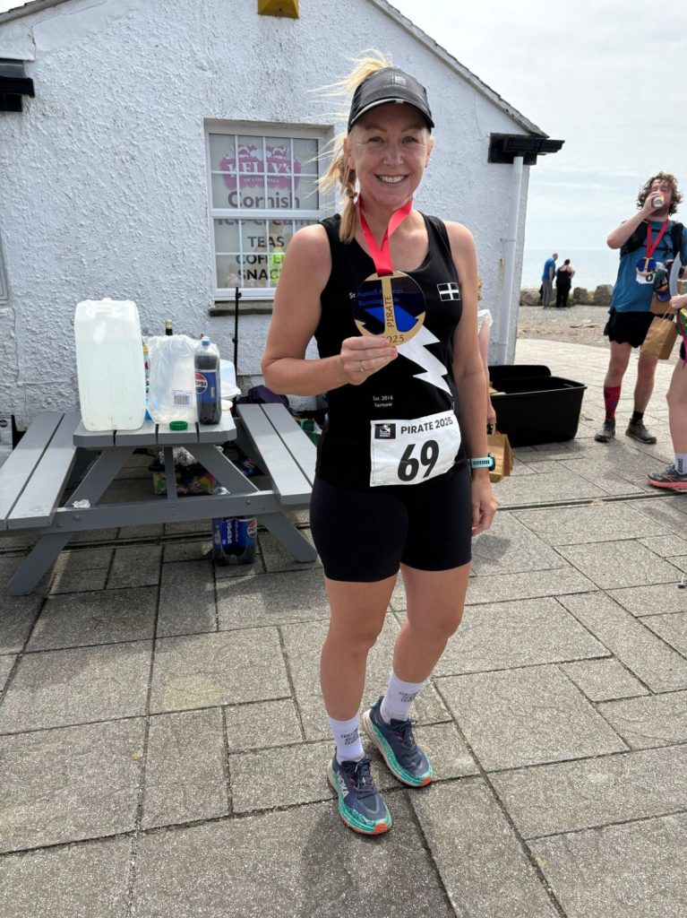 Keeley Phillips ran the half marathon which headed out to Cape Cornwall and back with over 650m of elevation which she said was tough in the hot conditions. She was chuffed to beat her previous race time especially as the route was longer this year finishing in an unofficial time of 3hrs06.